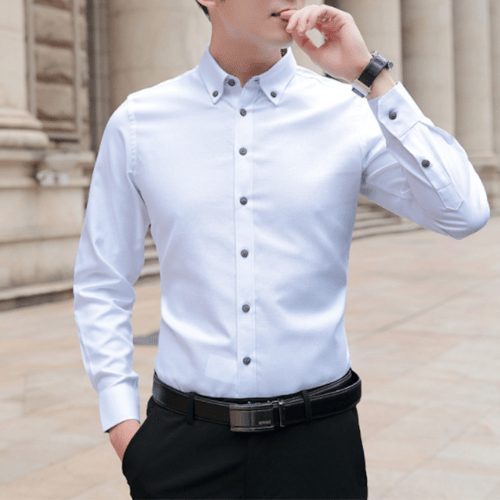 The beauty of the long-sleeve Oxford shirt lies in its adaptability. For a Professional Look, pair it with slim-fit chinos, a leather belt, and brogues. If you are aiming for Smart-Casual, wear it open over a clean white organic cotton t-shirt with dark indigo jeans. For Weekend Vibes, roll up the sleeves to the mid-forearm and pair with your favorite shorts or relaxed cargos. It also layers beautifully under a crew-neck sweater or a structured blazer for those cooler autumn mornings.