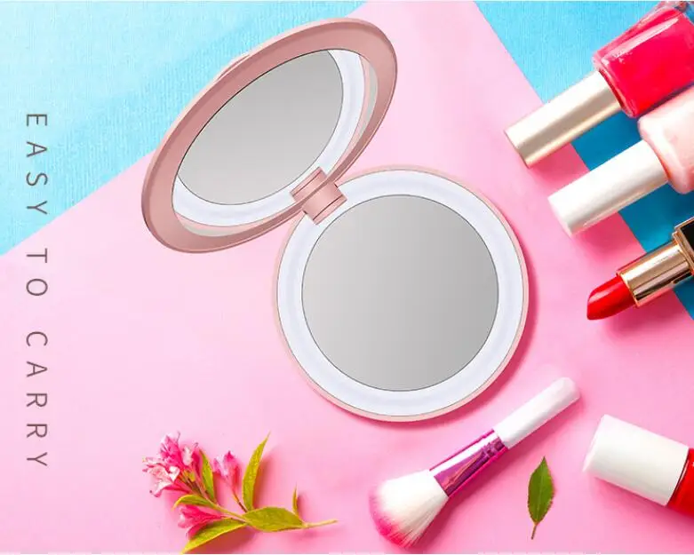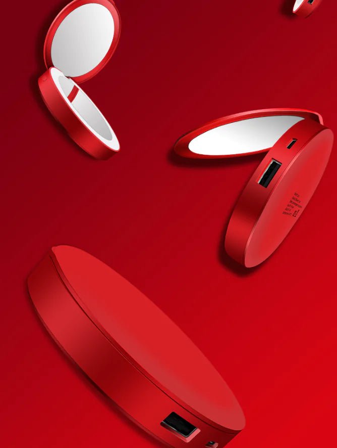 Portable Folding LED Power Bank with Makeup Mirror